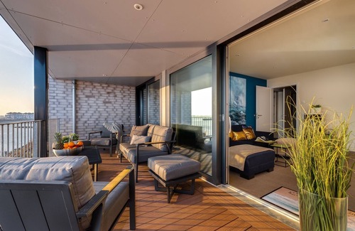 The floor to ceiling panoramic windows with access to the spacious balcony allow at any time a clear view of the harbor entrance, the Baltic Sea and the marina of the marina.