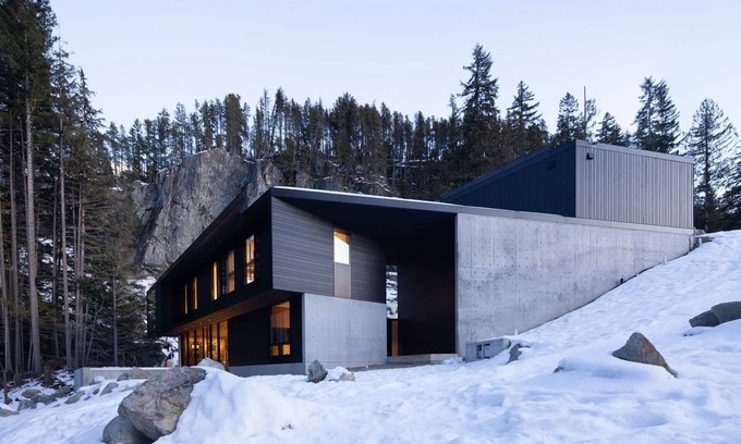 This 5,500-square-foot modern chalet is a bold yet serene alpine retreat designed by Battersby Howat Architects. Nestled into a sloping forested landscape beside the Green River in Whistler, it offers a luxurious getaway for up to 16 guests. Merging raw natural beauty with elevated architectural design, it’s the perfect year-round base for snowboarders, skiers, hikers, and mountain bikers alike.
