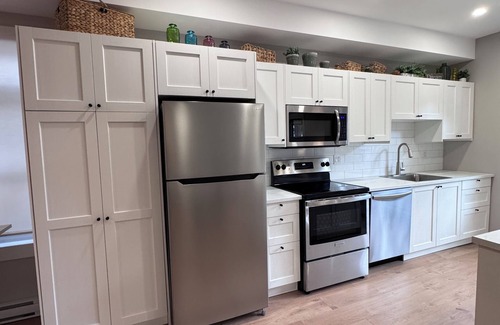 This private, condo-style suite features a separate entrance, air conditioning, fridge, stove, microwave, chest freezer, central vacuum, car charging station, dedicated premium high-speed internet, and cleaning service—everything you need for a comfortable and efficient stay.