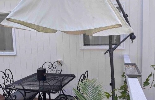 Guest parking off road next to accomodation, 4 steps up to the deck and private entrance .Guest can feed the local bird life, seed provided Guest can walk around the gardens.