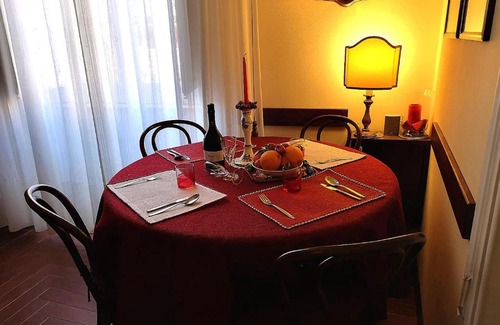 Food & DrinkTea/Coffee maker, Bottle of water, Chocolate/CookiesBathroomShower, Hairdryer, Bathrobe, Shared bathroom, Free toiletries, Toilet, Bathtub or shower, Bidet, Towels, Toilet paper, Shampoo, Body soapGeneralSafe, Air conditioning, Iron, Ironing facilities, Heating, Private entrance, Tile/Marble floor, Trash cans, Key accessMedia & TechnologyTV, DVD player, CD player, Video, Flat-screen TV, Blu-ray player, Mobile hotspot deviceKitchenKitchenette, Refrigerator, Microwave, Washing machine, Kitchen, Electric kettle, Kitchenware, Oven, Stovetop, Toaster, Cleaning products, Coffee machine, Dining table, Wine glassesOutdoorsBalconyLiving AreaDesk, Sitting area, Sofa, Dining areaViewView, Garden view, City view, Quiet street viewBedroomAlarm clock, Wardrobe or closet, LinensAccessibilityUpper floors accessible by stairs onlyBuilding CharacteristicsPrivate apartment in buildingRoom AmenitiesClothes rack, Drying rack for clothing, Sofa bed, Socket near the bed, Non-feather pillow, Hypoallergenic pillowEntertainment & Family ServicesBoard games/puzzles, Books, DVDs or music for childrenPool and SpaPool towelsLayoutWindow |