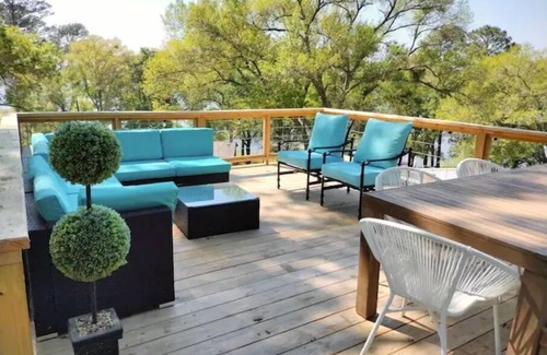 Welcome to the The White House, located in Willis, TX. This home offers one-of-a-kind 30 feet deck overlooking a long-stretch sunrise/sunset gorgeous scenic views of the south and north forest end of Lake Conroe. This beautiful country meets modern décor 3bd/2ba tri-level balcony home is perfect for a get-a-way from the daily’s hustle & bustle to enjoy the panoramic views of Lake Conroe and its surrounding beauty.