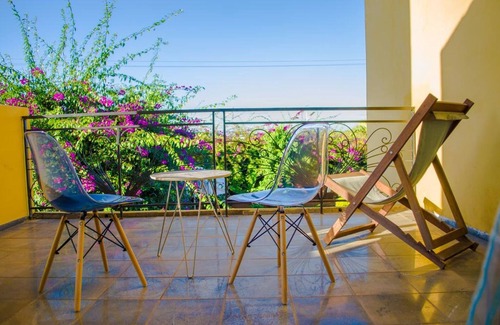 "Villa Alexander" is a modern reception structure characterized by large windows that diffuse solar luminosity in every interior environment. It has an integrated garage at its side and presents itself to guests with a beautiful flowered, colorful garden, and decorated with a romantic outdoor space, made by a whimsical Indian craftsman, which invites relaxation and conviviality in the interior. exterior of the house.
