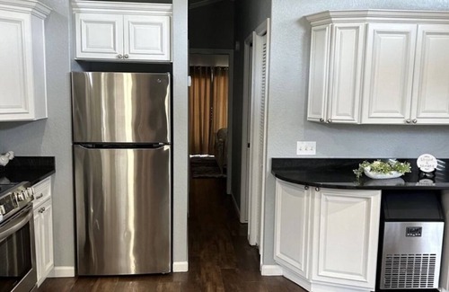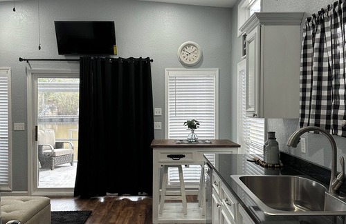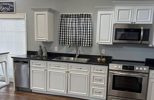 The White Rabbit Cottage is a serene and beautiful 55-foot houseboat with 2 bedrooms and 1.5 baths. 880 feet. Recently remodeled, it features new floors, appliances, granite countertops, furniture, AC/heat unit, and smart TVs. Ceiling fans in living room, primary bedroom and screened porch. The fully stocked kitchen and WiFi make it ideal for families. The large screen porch offers stunning views of the marina and Flint River. Located at The Bainbridge Marina and Scooter's RV park, guests have access to a gated marina, store, restaurant, laundry facility, and restrooms. Nearby historic downtown Bainbridge offers restaurants, shopping, and a downtown square, while grocery stores and Walmart are less than 10 minutes away.