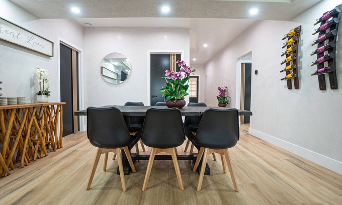 Welcome to this stunning and expansive five-bedroom private house, which has recently undergone a complete remodeling construction. The house boasts a beautiful and modern kitchen, perfect for culinary enthusiasts. It also features a spacious dining room, designed to comfortably accommodate large families or groups. Each bedroom is equipped with its own TV, ensuring that everyone can unwind and enjoy their favorite shows or movies in privacy.