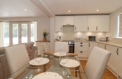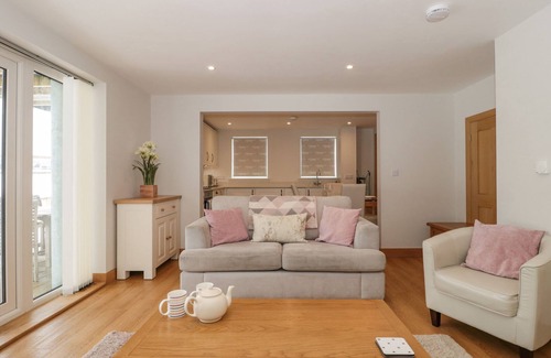 Amenities: Air source heat pump central heating. Electric oven and hob, microwave, fridge with ice box, washer/dryer and dishwasher. 2 x Smart TVs and WiFi. Fuel and power inc. in rent. Bed linen and towels inc. in rent. Travel cot, highchair and stairgate available on request. Ample driveway parking. EV charging point. Balcony with furniture. Private patio with furniture. Shared garden with lawn. Two small well-behaved dogs welcome. Sorry, no smoking. Shop and pub 2.5 miles. Note: Dogs are to be kept downstairs, off any furniture, and must not be left unattended. Note: The sofa bed in the living space can accommodate 2 more guests, making a total of 6 guests, at £20 per person, per night; please request this upon booking. Note: This property is disabled-friendly, with possible access via a threshold ramp; please request this in advance