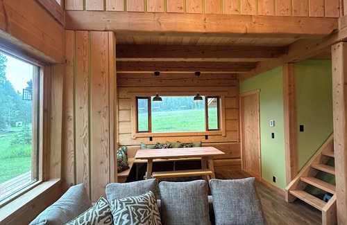 A beautiful, hand built, log cabin, finished to a high standard to provide everything that you need. Situated on 80 acres with amazing views of the Rocky Mountains, and a private hot tub, the cabin is perfect for mountain adventures, relaxation and romance.