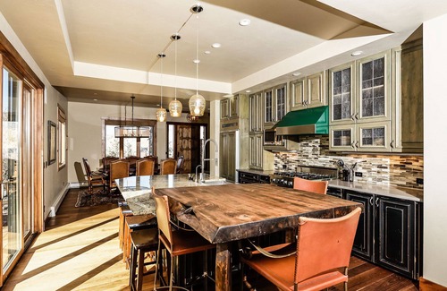 This house offers TWO luxurious master bedrooms/bathrooms with decks overlooking the river as well as a third bedroom with king bed and its own bathroom. Bedroom four offers a queen bed and the fifth bedroom features two twin beds that are great for the kids. We have also added first-class amenities such as top of the line kitchen appliances, heated floors in the master baths, Comcast and Apple TV, Sonos sound system and a hard-piped humidification system to counter the drier mountain air.