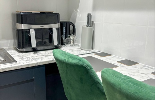 GeneralElectric kettle, Cable TV service, Number of bedrooms - 1, Toilet paper, Extra bed count 1, Separate dining area, Hypo-allergenic bedding available, Shampoo, Location - below ground, Bed count minimum 1, Fan, Pet-friendly room, Toaster, Bed sheets provided, Hair dryer, Kitchenette, Coffee/tea maker, Microwave, Shower only, Towels provided, Soap, Free toiletries, Flat-panel TV, Number of bathrooms - 1, Private bathroom, Heating, Desk, Separate sitting area, Bed count maximum 1 |