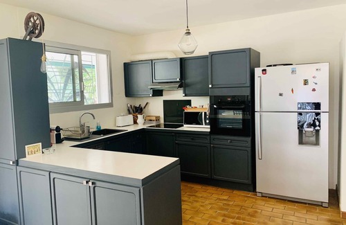 In summer, you will mainly stay outside where the space has been arranged to host friendly tables around the barbecue, moments of relaxation and unforgettable games with family. The mediterranean garden invites you to discover the essences of our region. You can enjoy the freshness in the shade of pines and fig trees. In the kitchen, everything you need is there to make your life easier.