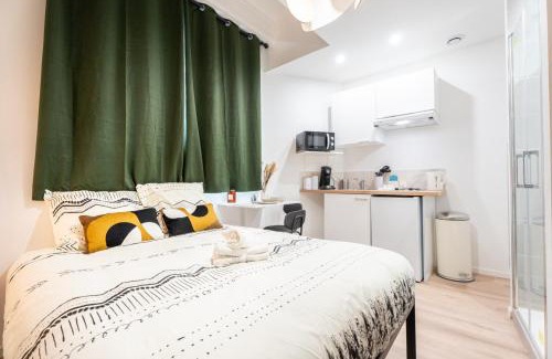 THEM'APPARTS BORDEAUX Sainte Croix provides rooms in Bordeaux near Museum of Aquitaine and Place de la Bourse. During your time at this recently renovated apartment, dating back to 1900, you'll have access to free Wifi. Guests can use the hot tub or enjoy city views. The units come with parquet floors and feature a fully equipped kitchenette with a microwave, a dining area, a flat-screen TV with satellite channels, and a private bathroom with shower and a hair dryer. A fridge, a stovetop, and kitchenware are also provided, as well as a coffee machine and a kettle. At the apartment complex, all units come with bed linen and towels. Popular points of interest near the apartment include Stone Bridge, Great Bell Bordeaux, and Saint Michel Basilica. Bordeaux–Mérignac Airport is 8.1 miles away.