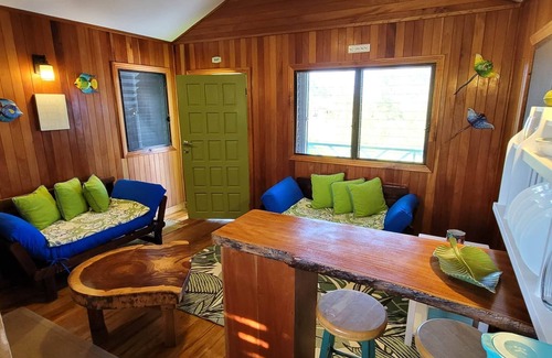 This is a charming spot on historic St. George’s Caye. This beautiful island is where the country of Belize began. Just 30 minutes by boat from Belize City, airport pickup to and from the island is complimentary. Great fishing, swimming, kayaking, bird watching, biking and just enjoying nature! The property has 2 piers and 3 cabins. It’s a Green property! Solar Powered - each cabin has a solar water heater. Free Hi-speed WiFi even on the docks makes it perfect for “work from home”. There are three cabins on the property. Each with its own bathroom, kitchenette, bedroom and living room. This cabin has a queen bed in the bedroom and two sofa sleepers in the living room. It also has an extra bathroom downstairs. Guests have access to the entire cabin plus the utility room which houses a washer and dryer. Complimentary hi-speed WiFi is available. Guests can also use common equipment such as kayaks, paddle board, bicycles, snorkeling gear and fishing gear. Eugene the Captain is available 24x7 to answer questions and assist guests. He has an assistant and if requested, a cook to prepare meals. Although it’s only 20 mins away from Belize City by boat, the location is fairly isolated and peaceful. The occasional fisherman might pass by. The St. George’s Caye Resort is also not far away. The resort has a Spa, offers scuba diving tours and has a reservations only restaurant. Seasports Belize also offers Scuba diving tours. The boat captain will be there. He captains a 23 ft skiff which can be rented for snorkeling, fishing, or trips to the city. There is also a larger boat for fishing outside the reef. Hi-speed WiFi is available throughout the property, making it a perfect place to “work from home”. Imagine setting up with you laptop on the Dock, enjoying the cool sea breeze and awesome view. Eugene, Alex and Emily are available 24x7, and are all vaccinated against COVID. This makes it a perfect COVID get-away!