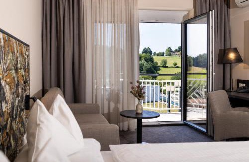 Surrounded by the gently rolling hills of Styria’s Thermal Region, Thermalhotel Leitner offers access to the Loipersdorf Thermal Spa through a bathrobe hall : there are different rates with and without entry to the thermal baths Thermalhotel Leitner features its own sauna world with Finnish sauna, herbal sauna, steam bath and relaxation area. The Leitner Thermalhotel's restaurant includes a spacious terrace, a lounge, and a winter garden. The rooms feature satellite and Sky TV channels. The thermal spa’s relaxation area has a separate area for hotel guests. Many sports and activity programs, as well as beauty therapies, are offered.
