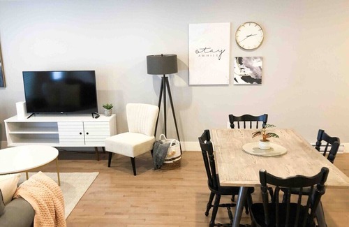 A fresh and modern 2 bedroom, 1.5 bath open concept 2 story apartment building, complete with wifi and a smart TV. Free parking on premises for 1 vehicle.