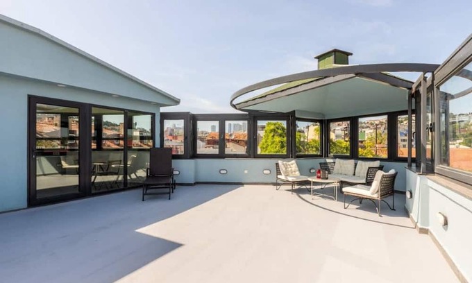 The shared terrace offers panoramic views of the Bosphorus and the bustling streets of Ortaköy, providing the perfect spot to unwind and soak in the beauty of Istanbul's skyline.