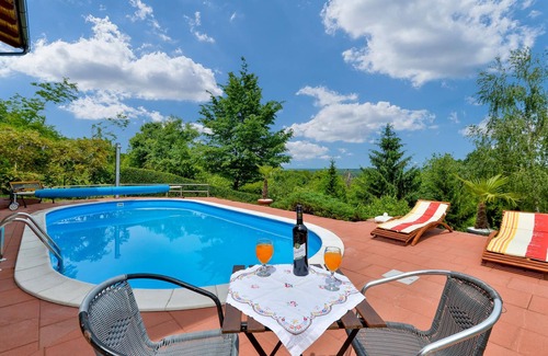 This beautiful vacation home is located on a hill above the town of Petrinja. Surrounded by lots of greenery and a forest, here you will relax from everyday stress in a natural environment. Prepare delicious meals on the grill, swim in the pool and relax in the sauna. Spend pleasant evenings with a beautiful view of Petrinja. In the surrounding area there are several marked cycling and hiking trails. You can also walk through the beautiful forest where you can see deer and hares. Only 15 minutes walk from the house is the river Kupa and the center of Petrinja with sights.