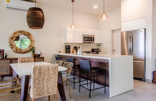 Beachfront Oasis is nestled between the beach and the rainforest, giving it the perfect relaxed tree house vibe with all of the most amazing amenities. You will have amazing sunset views right out your living room window, along with excellent surf, fishing, pool, and amazing restaurants all a short walk away. This two-bedroom condo is perfect for family and friends looking for a quiet place to relax and recharge. It is located in the beautiful Villa Marina development adjacent to the rain forest, giving you perfect sounds of nature and waves.