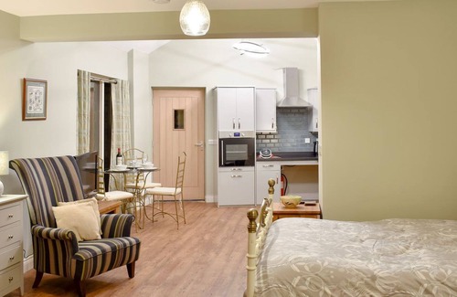 Wet Room: Shower, Toilet, Grab Rail, Shower Seat. Gas central heating, electricity, bed linen, towels and Wi-Fi included. Travel cot available on request. Use of owner’s washing machine. Small enclosed courtyard with garden furniture. Private parking for 1 car. Wheelchair access. No smoking.. Fully refurbished in 2019, The Croft is a ground floor annexe with private parking, situated just a short stroll from the centre of the charming village of Sedgefield, near Durham. Providing level entry access suitable for wheelchair users or for guests with limited mobility, The Croft is open plan with a fitted kitchen, modified with lower level worktops and under-counter access for a wheelchair user. There is a comfortable living area leading into the bedroom space. A large fully-tiled wet room with non-slip flooring, raised height toilet, grab rails and shower seat complete the accommodation.