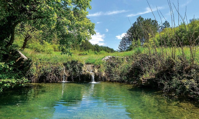 This holiday home with pool is peacefully located and surrounded by unspoilt nature. It consists of a ground floor, which is not in use, and an upper floor, where the living unit is located. You can relax by the pool in the beautifully landscaped and spacious courtyard. About 8 km away, in neighbouring Bosnia and Herzegovina, you can find refreshment in the artificial lake Buko Blato. Rafting adventures await you 17 km away in the Cetina Gorge. You can also swim in the river. The town of Trilj, with cultural and entertaining leisure activities, is about 17 kilometres away.