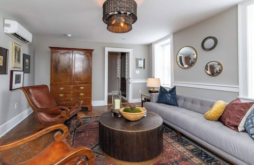 We are located on Main Street and located next to Bourbon on Main. Our antique home is full of charm and character. There is a possibility for noise being downtown. Our kitchen and courtyard do overlook the outdoor dining area of Bourbon on Main. Please note that as it is an antique home, it is not fully accessible for some guests. Please inquire if you have questions about accessibility.