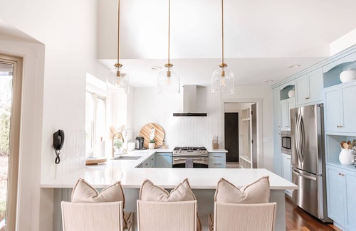 The pool and brand new hot tub are great amenities for relaxation and the outdoor patio with a BBQ and covered deck is perfect for outdoor dining and lounging. Grab a sun lounger and take in some rays as you lay peacefully by the pool The newly renovated kitchen with coastal blue cabinetry and white quartz counters is a chef's dream and the upgraded espresso coffee maker and drip machine with local coffee choices will surely be appreciated by coffee lovers.