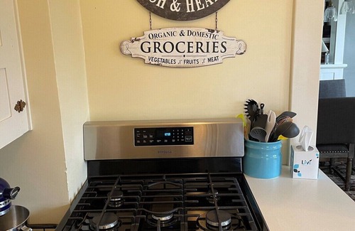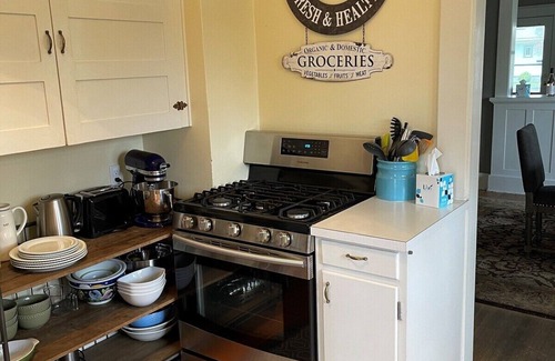 The Arbour House offers ample space for families and groups of friends traveling together, with its five gracious Queen bedrooms. Two of these bedrooms boast en-suite baths, while another full bath on the main floor and a half bath on the lower floor ensure convenience for all guests. The bathrooms have been lovingly remodeled with vintage-style fixtures and large step-in showers, providing a perfect blend of modern comfort and timeless elegance.