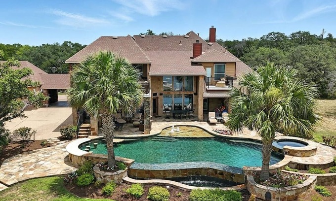 Experience luxury on Lake Travis! Enjoy stunning lake views, a private pool, spa, fire pit, and plenty of space for the whole crew. This gated retreat sleeps 17+ and features a chef’s kitchen, bar, media room, game room, dedicated office, playscape, trampoline and tons of parking. Perfect for families or group getaways with a grill and smoker for outdoor dining. Relax, play, and unwind in this unforgettable lakeside escape.