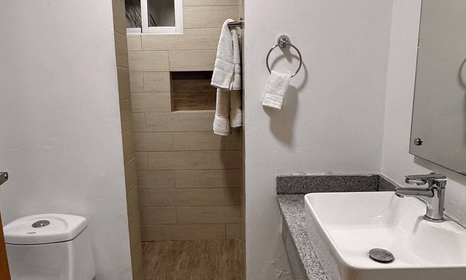While you're here, you can enjoy all the comforts of home and more, including WiFi and a bidet, as well as air conditioning and an ironing board. Other amenities include laundry facilities, towels, soap, and toilet paper.