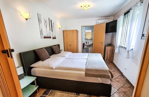 This small Kellerstöckl in the middle of the idyllic vineyards of southern Burgenland will delight you. The furnishings are simple, but cozy. The bedroom is separated from the kitchen by a folding door. In the fridge you will find mineral water upon your arrival. A newly built arbor offers you a nice opportunity to enjoy a glass of wine outdoors. Furthermore, the vacation property is equipped with air conditioning. The cottage is located in a cellar alley together with other Kellerstöckln, but is still very quiet. Firewood for the Swedish stove can be obtained from the house owners. In the garden behind the house you will find deck chairs as well as two benches and a barbecue, which is at your disposal. There is also the possibility to buy some wines directly from the farm, an ideal souvenir from your vacation: Welschriesling, Burgundy and Blaufränkisch. 94% of Blaufränkisch is grown in Burgenland. Three bathing lakes offer cooling in the summer months: Burg (6 km) Königsdorf (43 km), Rauchwart (21 km).
