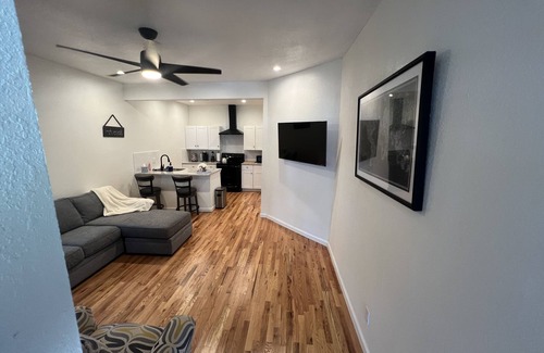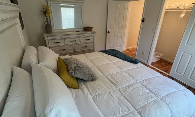 1 King, 1 queen and 1 full bed, 2 bathrooms, newly renovated. A bright open space with a porch to relax. Close to shops and eateries., it’s perfect for your next holiday!