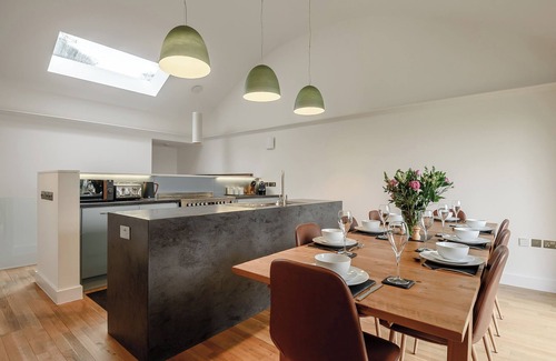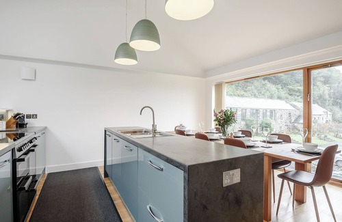Separate toilet.. Air source underfloor central heating, electricity, bed linen, towels and Wi-Fi included. Initial fuel for wood burner included. Travel cot, highchair and stairgate. Welcome pack. . Back garden with patio, sitting out area, garden furniture and BBQ. Bike store. Private parking for 3 cars. No smoking. Please note: The garden perimeter consists of a low wall in some areas. Sorry, no hen or stag parties. Couple and family bookings only. Please note there is a £200 security deposit on this property.. Hafarn Yr Haul is a striking holiday home. It is nestled within the outdoor adventure capital of North Wales, that is the Snowdonia National Park. Snowdonia is an area of exceptional natural beauty making this property a perfect location for your Welsh holiday experience. This magnificent holiday home has been renovated to an exceptional standard, creating luxury accommodation ideal for families or a large group of friends. The upside-down layout is cleverly thought out to enhance your experience of the views surrounding the property. The contemporary kitchen is very well equipped along with an open plan dining area seating for up to 10 guests, a perfect spot to gather as a family or for entertaining. Stepping into the living room you will be met by a beautiful double sided wood burner. On those clear evenings the underfloor heating throughout the house will ensure you stay warm and cosy. The living room itself has plenty of seating for everyone, and a Smart Flatscreen TV.