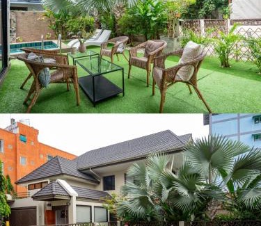 Offering a garden, Thonglor 25 Noble House provides accommodations in Bangkok. This property offers access to a balcony, free private parking, and free Wifi. The villa has a year-round outdoor pool and a hot tub. Providing a terrace and garden views, the spacious villa includes 6 bedrooms, a living room, flat-screen TV, an equipped kitchen, and 4 bathrooms with a hot tub. The accommodation is non-smoking. Emporium Shopping Mall is 1.7 miles from the villa, while Central Embassy is 3.5 miles away. Suvarnabhumi Airport is 15 miles from the property.