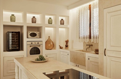 The Three Bedroom Sea View Villa with Private Pool channels the splendour of an old-world country estate. White-washed interiors, lavish furnishings and ornate details pay homage to the nobility of old-world Zakynthian design, welcoming guests into the refinement of the past and the comfort of the present. Across three bedrooms, three bathrooms and a separate living room, the villa hosts up to 7 guests. Outside, a furnished terrace with a private garden overlooks a 100 m² swimming pool that drops away into an endless blue vista of the Ionian Sea. Serenity, seclusion and sophistication flow throughout the space, a quintessentially classic summertime haven.