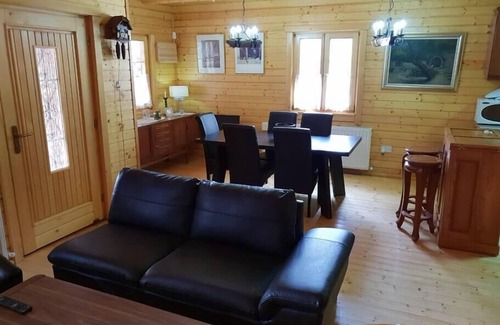 The third chalet is a two-bedroom accommodation with a bathroom on the first floor and a living-dining area with an open plan kitchen. Wi-Fi is provided on all three.