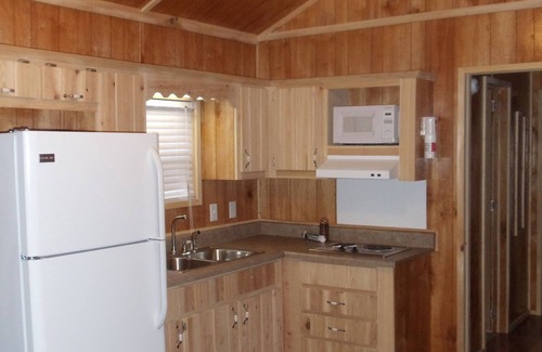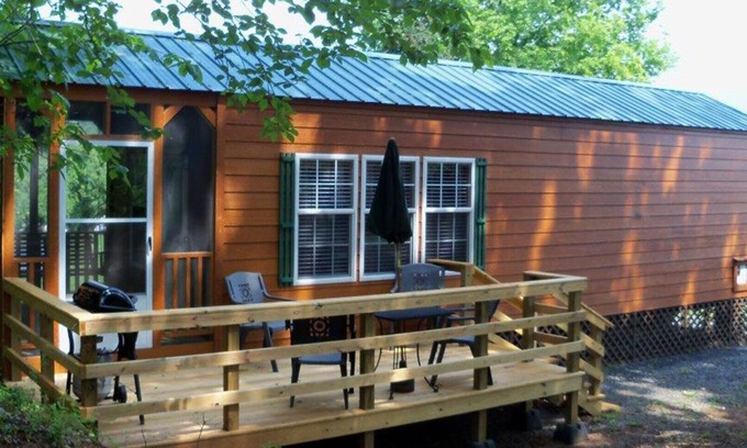 The cabin features one queen bed, one set of bunks and a comfortable sleeper sofa, central heat/air, free WiFi and an outdoor gas grill with picnic table.