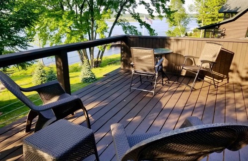 True Adirondack comfort and relaxation can be found in this cozy loft suite. Located on the shores of Lake Simond, at the intersection of Tupper Lake and the Raquette River, you will have direct private access to kayaking, canoeing, fishing or sitting on the dock to enjoy the sunset. With a private entrance to the suite above the garage, you will find your accommodations to be quite inviting. Tastefully decorated in Adirondack style, you will enjoy the comfortable furniture, large screen WIFI TV, and wonderful coffee counter equipped with Keurig, drip coffee maker and electric tea kettle. There is NOT A KITCHEN. There's a grill located on your private deck right off of your suite. Private lean-to and firepit provide the perfect evening relaxation spot! Our location and easy access to town and the surrounding areas have been a real plus for many of our guests. We are not secluded in the woods, you can see the bridge and the road (see sunset picture). ABSOLUTELY NO ANIMALS AND NO SMOKING