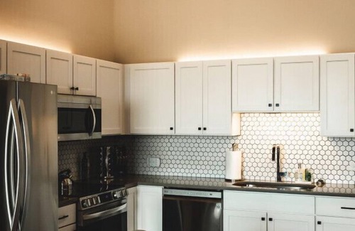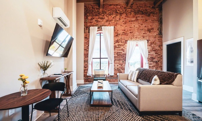 Steps from shops, dining, and Yadkin Valley wine country, our modern-industrial space offers plush comfort, full-size kitchens, laundry on-site, ultrafast Wi-Fi, smart-lock entry, and parking.