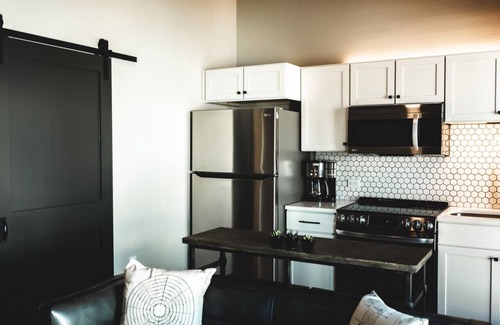 Steps from shops, dining, and Yadkin Valley wine country, our modern-industrial space offers plush comfort, full-size kitchens, laundry on-site, ultrafast Wi-Fi, smart-lock entry, and parking.