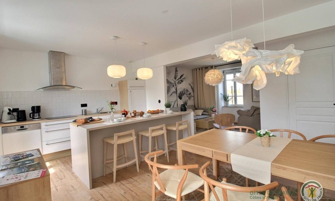Ground floor: kitchen, living room, bedroom (2 90x200 beds that can be twinned into 180x200), bathroom with shower, toilet, equipped laundry room. Exteriors: garden of 100 m², a first terrace with plancha, a second covered, private. Parking your vehicle in a private courtyard of 150 m². Semi-detached house. Located 2 km from the sea, you will not remain insensitive to the services of this house, where old parquet floors and trendy decoration combine. Here everything has been thought out to make you feel at home. For your excursions, you will be spoiled for choice. Access the large beach of Saint Efflam (2 km) and its nautical center. This beach is ideal for swimming and conducive to nautical activities both on the water and on the sand. Nearby, the beaches: Beg Douar (3.7 km) or priests (3.6 km) will also tempt you. The GR34 will allow you beautiful walks. Go to the Gallo-Roman ruins of Hogolo to discover a view of Loquirec, pearl of our region. A getaway on an island tempts you? You will quickly reach the island of Batz (47 km) or the island of Brehat (57 km). Perros Guirec and its Pink Granite Coast (27 km), Lannion (18 km), Morlaix (19 km). Cottage located a few steps from the town center and its amenities (shops, restaurants, etc.)