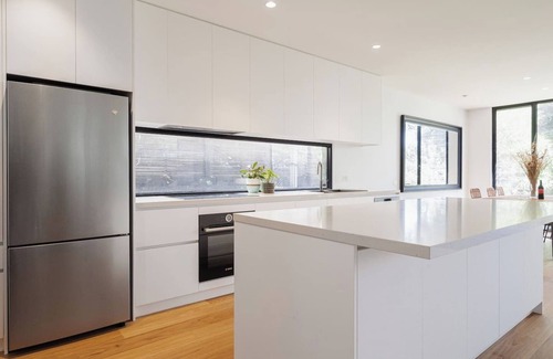 Sleep easily in each of the three bedrooms, with central cooling and heating. The primary bedroom highlights a queen-sized bed with a TV, wardrobes and an ensuite bathroom with a rain shower. The second bedroom also features a queen-sized bed, while the third bedroom comes with two single beds, perfect for those travelling with kids. Refresh within the design-driven main bathroom, enjoying a soak in the freestanding tub. Both bathrooms are stocked with complimentary boutique toiletries. You’ll also enjoy the convenience of laundry facilities, ideal for longer stays.