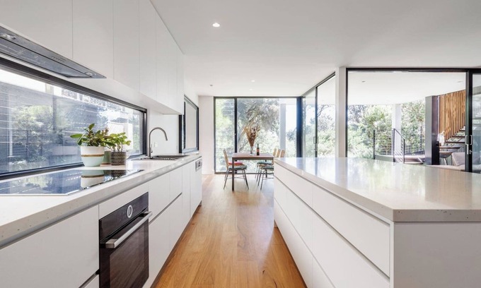 Wake to the sound of the lulling waves from this beachside residence on the shores of Bonbeach. Designed to accentuate its coastal locale, it features a path that leads straight down to the water. Spend your days sprawled out on the sand or come home to enjoy a true indoor-outdoor retreat.