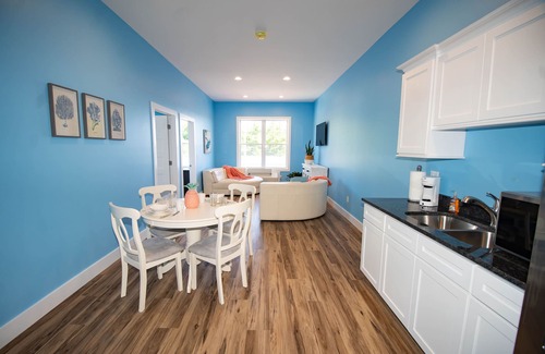 For your comfort we offer all queen size beds, a living room area with TV, full bath and half kitchen with Bayview.