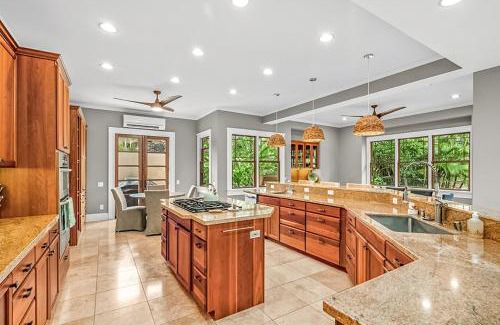 Tiki Villa In Poipu 5 Bd4bth, Pool & Ac Sleeps16 is located in Koloa, just 1.3 miles from Kiahuna Beach and 18 miles from Wailua Falls. This villa provides air-conditioned accommodations with a balcony. The villa also offers free Wifi, free private parking, and facilities for disabled guests. Offering a terrace and pool views, the spacious villa includes 5 bedrooms, a living room, flat-screen TV, an equipped kitchen, and 4 bathrooms with a bidet and a shower. This villa also has a patio that doubles up as an outdoor dining area. The villa offers bed linen, towels, and laundry service. There is an on-site bar. For guests with children, the villa features both an indoor and outdoor play area. Guests can swim in the outdoor swimming pool, relax in the garden, or go cycling or hiking. Lydgate State Park is 19 miles from Tiki Villa In Poipu 5 Bd4bth, Pool & Ac Sleeps16, while Waimea Canyon is 26 miles away. Lihue Airport is 15 miles from the property.