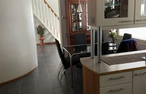 Tilava omakotitalo rauhallisella alueella is a sustainable apartment in Oulu where guests can make the most of the water sports and garden. This property offers access to a patio, free private parking, and free Wifi. The apartment has a picnic area and a sauna. Providing a terrace and garden views, the spacious apartment includes 4 bedrooms, a living room, cable flat-screen TV, an equipped kitchen, and 1 bathroom with a bidet and a shower. Guests can enjoy an ambient stay in their soundproof room with parquet floors and a fireplace. This apartment is allergy-free and non-smoking. Guests can make the most of the warm weather with the property's barbecue facilities. Guests at the apartment will be able to enjoy activities in and around Oulu, like hiking. Guests can also relax in the shared lounge area. Oulu Railway Station is 6 miles from Tilava omakotitalo rauhallisella alueella, while University of Oulu is 10 miles away. The nearest airport is Oulu Airport, 5.6 miles from the accommodation.