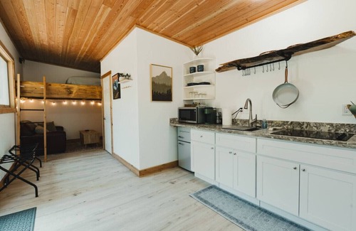 The interior is perfect for relaxing, playing games, watching movies, cooking & spending time together! There is WIFI, a bathroom w/shower and kitchen/dining area. The mini split Heating and Air Conditioning unit keep the temperature comfortable year-round.