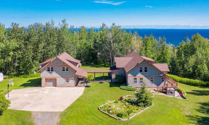 Beautiful timber-framed house with over 3900+ square feet, plus another 1100+ square feet in the guest house. Includes both buildings and 550 feet of private lake shore. It is located at the end of a 3 mile long gravel road. Quiet. Secluded. Private. Come enjoy a beautiful escape on the south shore of Lake Superior. NOW with high speed wifi! Literally 100 times faster than our old DSL (starlink- 253 mbps on July 3, 2024)!