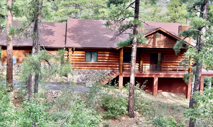 Discover the allure of Timbertrail Lodge, an upscale cabin nestled in the serene Prescott National Forest, just 9 miles or 20 minutes from downtown Prescott. Immerse yourself in the beauty of hand-hewn logs and quality furnishings, providing an unparalleled vacation experience.