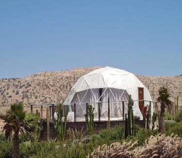 Timlalin Dome offers accommodations in Tamri, 24 miles from Atlantica Parc Aquatique and 31 miles from Golf Tazegzout. This property offers access to a terrace and free private parking. The accommodation offers airport transfers, while a bicycle rental service is also available. Guests can take in the views of the sea from the balcony, which also has outdoor furniture. The luxury tent offers bed linen, towels, and daily room service. A selection of options including warm dishes, local specialities, and fresh pastries are available for the buffet breakfast. Guests may eat at the on-site family-friendly restaurant, which is open for dinner, brunch, cocktails, and high tea. Guests can make the most of the garden, outdoor swimming pool, and yoga classes offered at the luxury tent. Guests can also warm up near the outdoor fireplace after a day of cycling. Agadir–Al Massira Airport is 54 miles from the property.