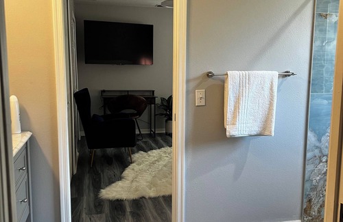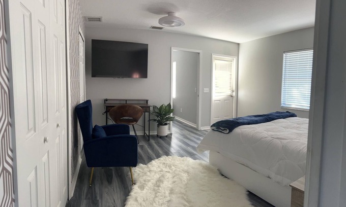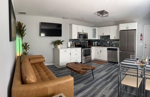 Welcome to our charming, newly renovated getaway rental nestled in a serene, safe neighborhood. This cozy retreat features one bedroom with three comfortable beds, ensuring a restful night's sleep. The fully equipped kitchen allows for culinary delights, while the adjoining laundry room adds convenience to your stay. Immerse yourself in the refreshing swimming pool, providing the perfect oasis for relaxation. Enjoy the tranquility of the surroundings, with the distant crowing of a rooster adding a touch of rural charm. Whether you're here for leisure or business, this idyllic haven offers the perfect blend of comfort and convenience.