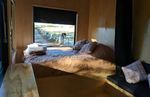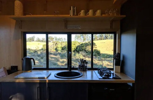 Welcome to the Tiny Farm House on The Hill. Enjoy the 180° views of the rolling Sunshine Coast Hinterland, mini cows, sheep & alpacas all from the windows of this 2021 minimal impact luxury tiny house. Cook up a feast with the equipped kitchenette and patio BBQ and eat near the outdoor fireplace watching the country stars come out. Meet the hand raised farm animals up close or snack on some seasonal organic farm fruit, veggies & herbs.